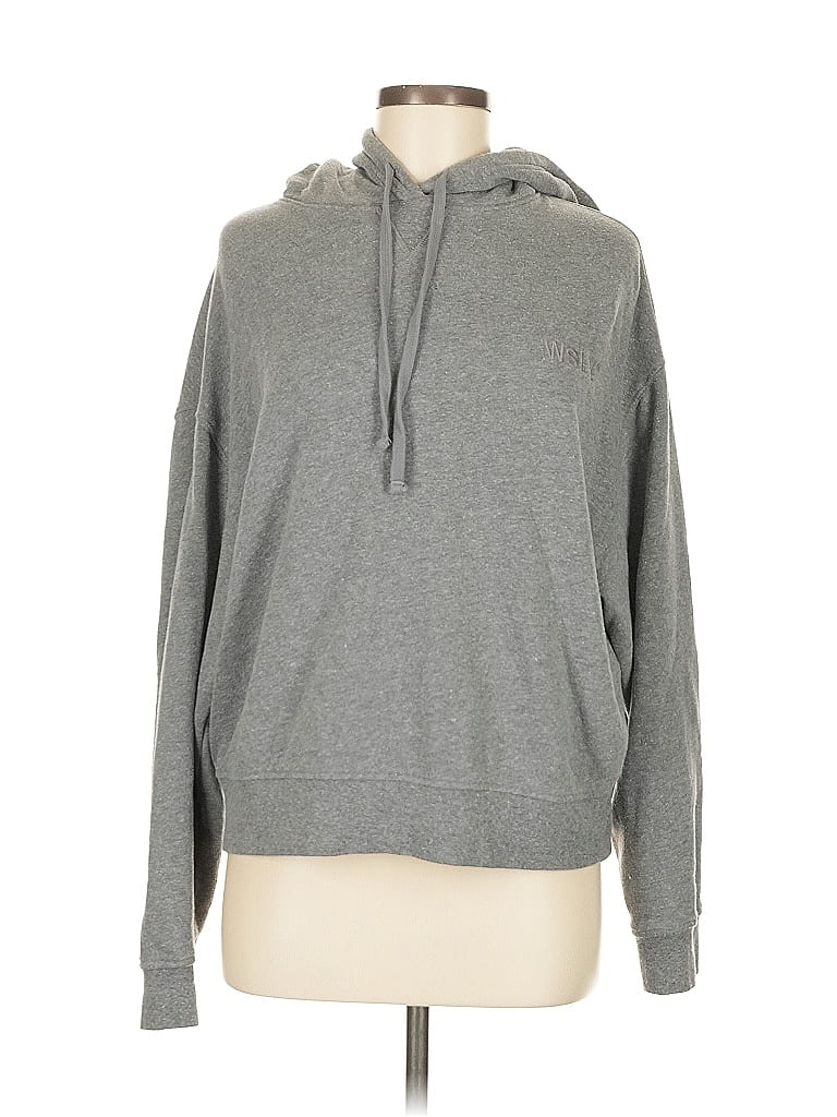 WSLY Pullover Hoodie, Size: Medium. Item Details: Gray, Cowl Neck, Long Sleeve, Women's Tops, Polyester/Cotton