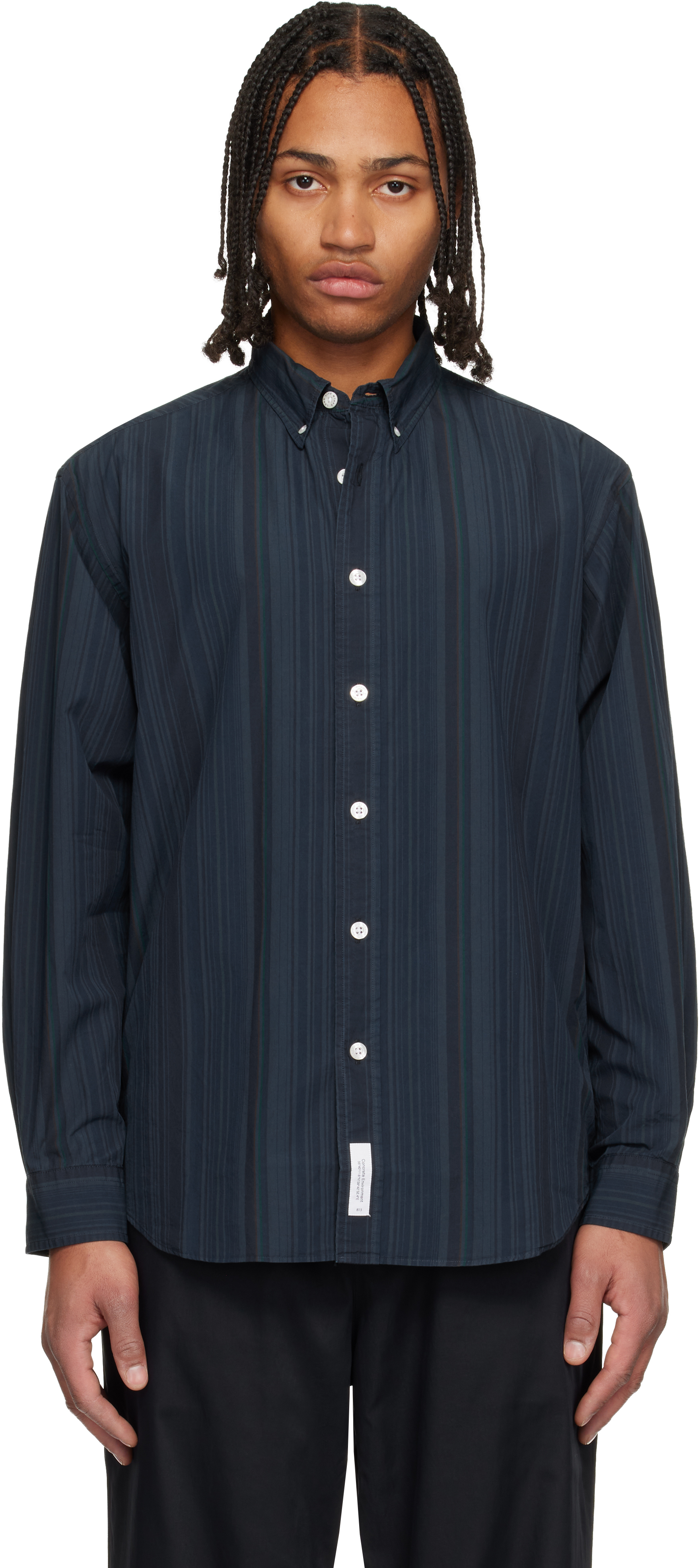 WTAPS Button-down Collar Striped Cotton-broadcloth Shirt In Blue