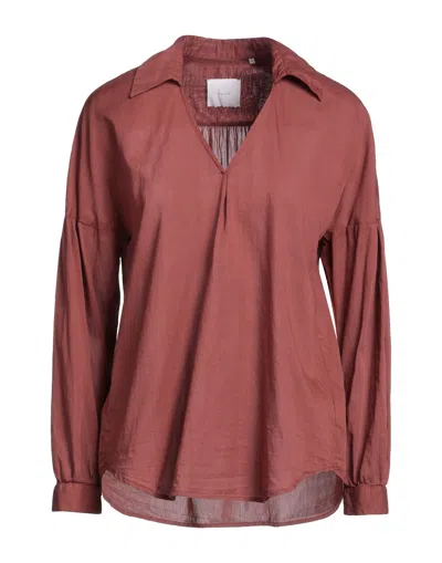 plain weave, no appliqués, solid color, v-neck, long sleeves, no pockets, contains non-textile parts of animal origin , Color: Rust , Size: 4