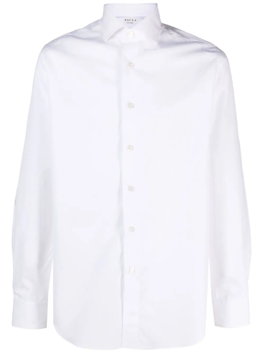 button-down long-sleeve shirt from XACUS featuring optical white, classic collar, front button fastening, long sleeves, buttoned cuffs and curved hem.