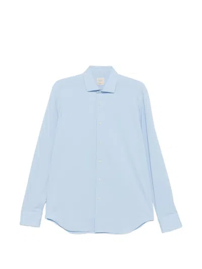 light blue button fastening long sleeves point collar curved hem