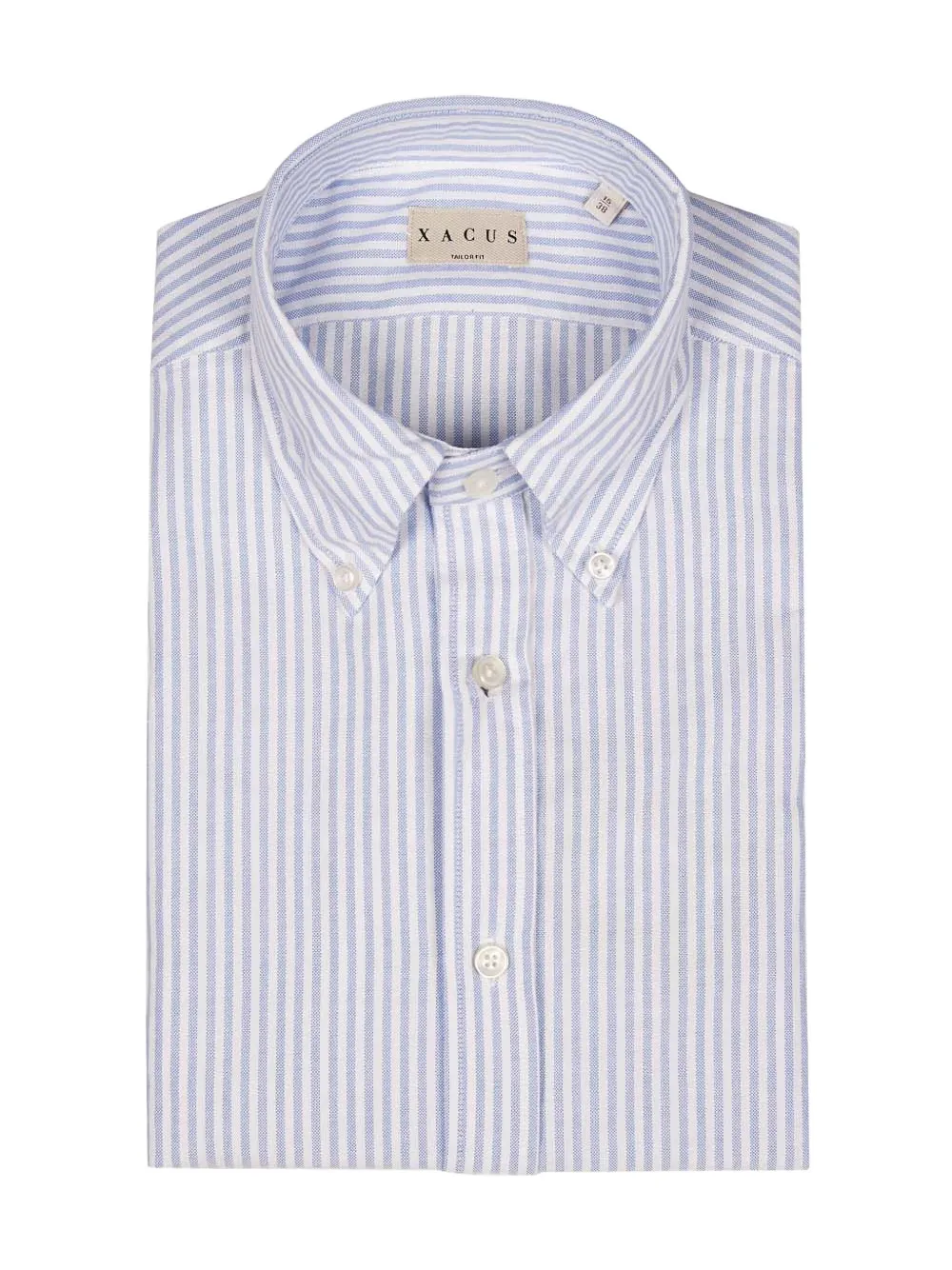 light blue striped buttoned button-down collar front button fastening long sleeves