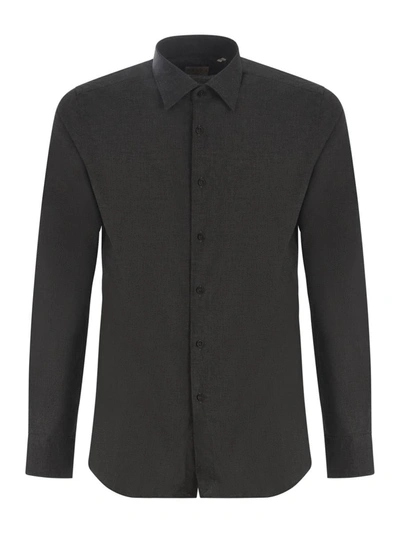Shirt Xacus made of Dark Gray cotton. Denim effect. Pointed collar. Long sleeves. Cuffs with buttons. Button closure on the front. Tailored fit. 100% Cotton Made in Italy Composition: Cotone