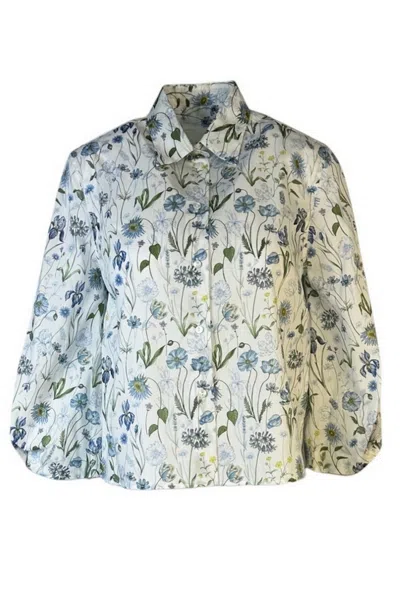 Xacus shirt. 3/4 length balloon sleeves. Floral pattern. Boxy fit. Pleat on the back. Composition: 100% cotton.