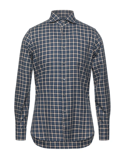 plain weave, no appliqués, tartan pattern, classic neckline, long sleeves, buttoned cuffs, button closing, no pockets, contains non-textile parts of animal origin , Color: Bright blue , Size: 15 ¾