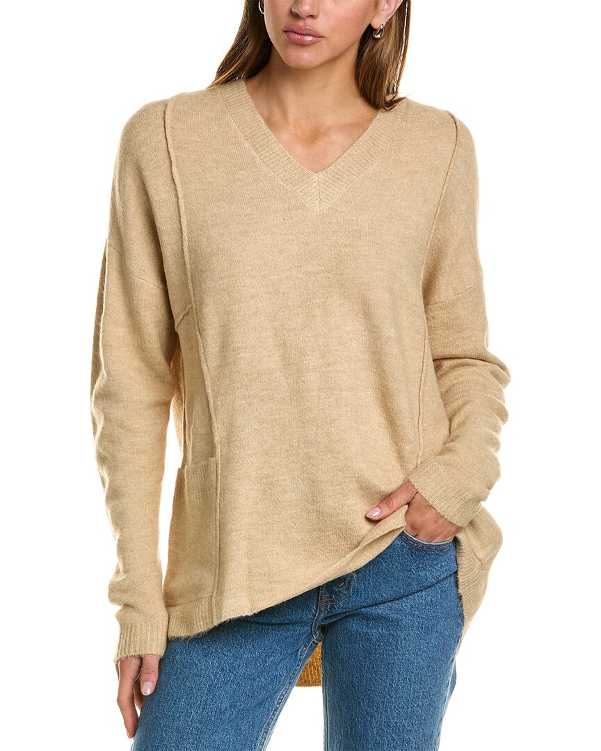 Introducing the XCVI Lucretia Pullover, a stylish and versatile addition to any woman's wardrobe. This pullover in pale camel features a trendy v-neck, dropped-shoulder sleeves, exposed seams, and dual side pockets for added convenience. With a length of approximately 28 inches from shoulder to hem, this pullover is perfect for pairing with your favorite jeans or leggings. Made from a blend of 74% acrylic, 22% polyester, and 4% spandex, this pullover is not only stylish but also comfortable to wear. The model is 5'10 and is wearing a size small, so you can trust that the fit is true to size. Machine washable and imported, this pullover is a must-have for any fashion-forward woman looking for cool and casual wardrobe staples.