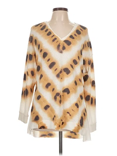 XCVI Pullover Sweater, Size: Large. Item Details: Ivory, Animal Print Pattern, Plunge Neckline, Long Sleeve, Women's Tops, Polyester/Rayon/Spandex