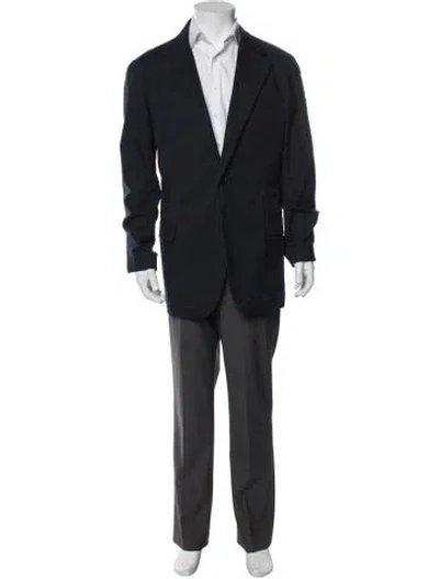 Y-3 Blazer Blue Notched Lapels Woven Lining Two-Button Closure at Front Fit: Suiting by Y-3 typically fit true to size. | Y-3 Blazer in Blue, Men's M