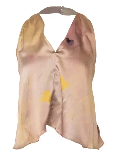 beige halterneck V-neck sleeveless asymmetric hem