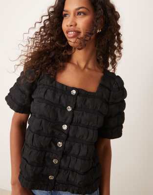 Tops by Y.A.S For your 'jeans and a nice top' dress code Square neck Button placket Short sleeves Regular fit