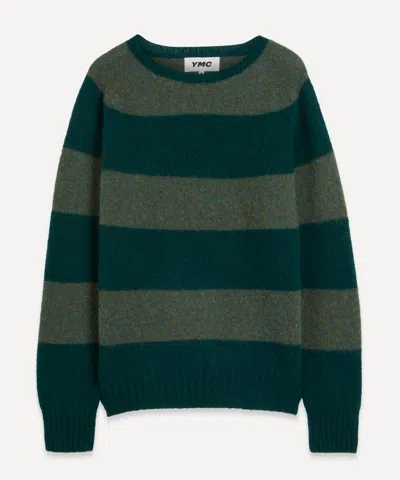 Ymc Mens Suedehead Stripe Crew-neck Jumper In Green