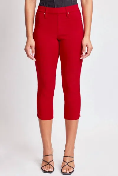 YMI Hyperstretch Pull On Capri With Side Slit In Red