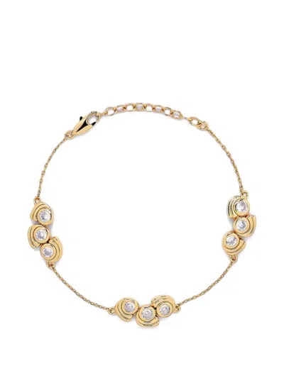 gold plated chain detail crystal embellishment lobster clasp fastening adjustable length Normal everyday use and external agents may reduce the lustre of gemstones and gold surfaces. To maintain, use specific, non-abrasive products specially meant for cleaning jewellery.