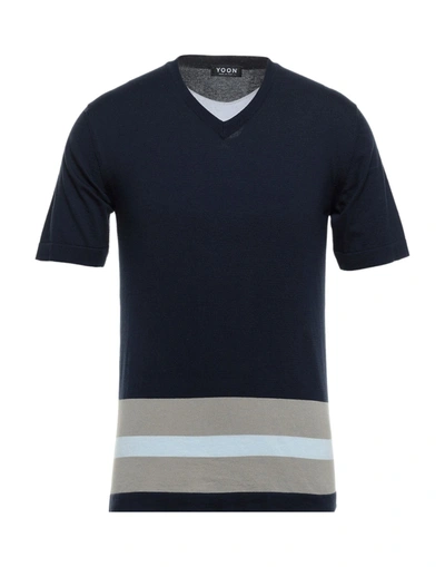 knitted, lightweight knit, no appliqués, stripes, v-neck, short sleeves, no pockets, small sized , Color: Midnight blue , Size: 42