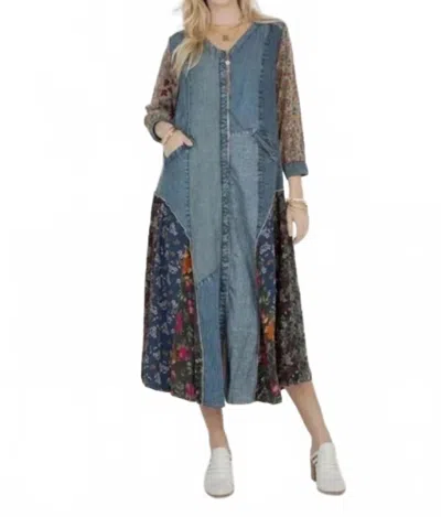 YOUNG THREADS Boho Patchwork Midi Dress In Blue