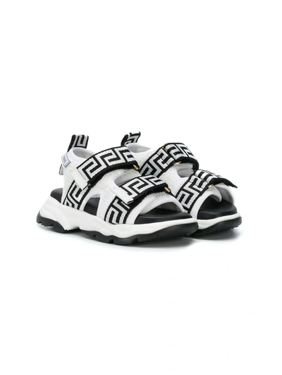 YOUNG VERSACE Kids' Greca-strap Mesh Sandals In White