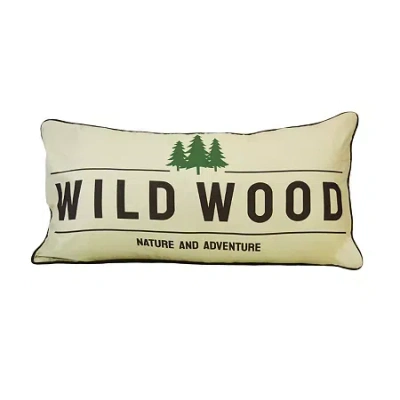 This rustic rectangle decorative pillow features the words "wild wood, nature and adventure" nestled among green pines. The reverse shows a complimenting buffalo check pattern. Removable cover for easy cleaning. Machine wash cold, do not bleach, tumble dry low. Coordinates with your lifestyle by donna sharp's the great outdoors bedding collection. 100% polyester, dimensions 11" x 22". Features: Removable Cover, ReversibleShape: RectanglePillow Size: 11 X 22 InBack Fabric: MicrofiberFront Fabric: MicrofiberFiber Content: 100% PolyesterFilling Content: 100% PolyesterCare: Machine Washable Cover, Tumble DryDecor Styles: RusticMaterial: PolyesterCountry of Origin: Imported