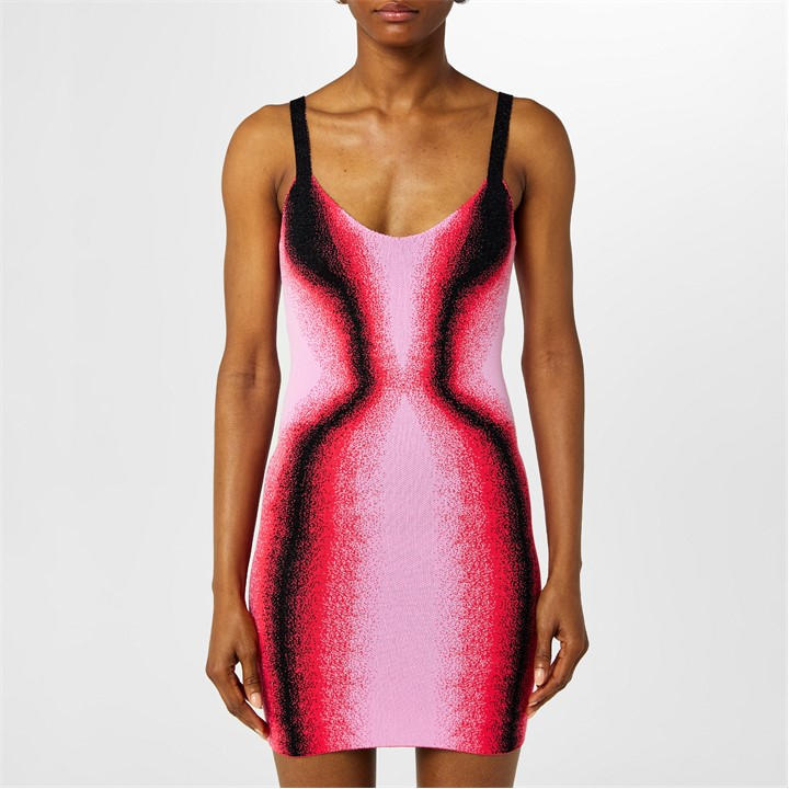 Grandient Knit Mini Dress By Y-project. Featuring: Spaghetti Straps Knit Mini Dress With Gradient Knit Design Flexible Chrome Y Detail On The Back Model Is 1,72m And Wears Size S. Composition: 48% viscose, 20% polyester, 16% cupro, 8% metalized polyester, 7% polyamide, 1% elastane