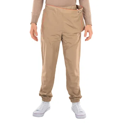 Y/Project Men's Bottoms. Fashion category - Pants & Leggings. SKU - PANT81-S22-BEIGE. Color - Beige. Y / Project Asymmetric Waist Lazy Nylon Pants. This pair of pants is made form nylon and features an asymmetric waistline that curves around the side and levels out on the right side, elasticated waist and an elasticated hem with four welt pockets. 100% Polyester.