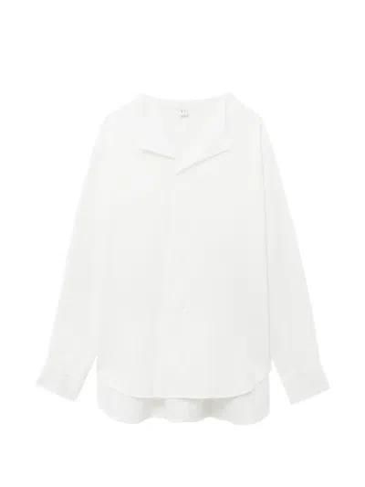 white asymmetric collar long sleeves button fastening high-low hem cotton