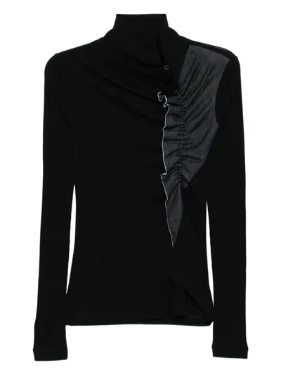 Y'S Denim-patch Top In Black