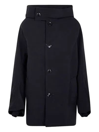 Y'S Hooded Buttoned Coat In Black