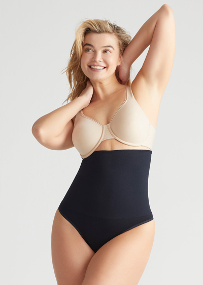 Yummie Seamless Solutions - High Waist Shaping Thong, Black Shapewear, Size Medium/Large