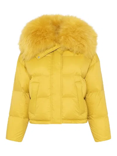 YVES SALOMON Fur Insert Down Jacket Puffer Jackets Yellow