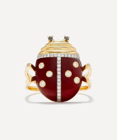 Yvonne Leon 9ct Gold Ladybug Ring In Burgundy