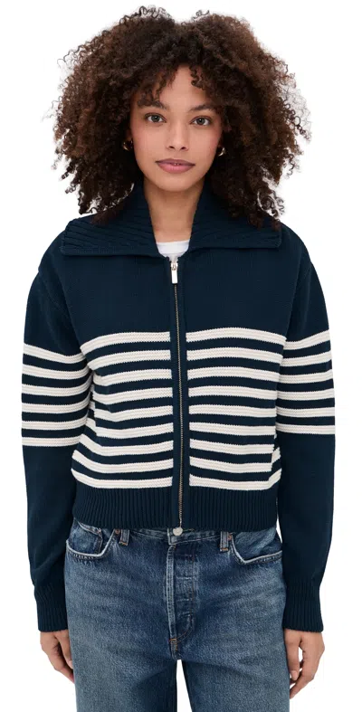 Fabric: Mid-weight stretch knit. Striped pattern. Ribbed trim. Collared neck. Long sleeves. Zip at front. Shell: 100% cotton. Hand wash. Imported, China. Measurements: Measurements from size S Length: 18.5in / 47.0cm, from shoulder