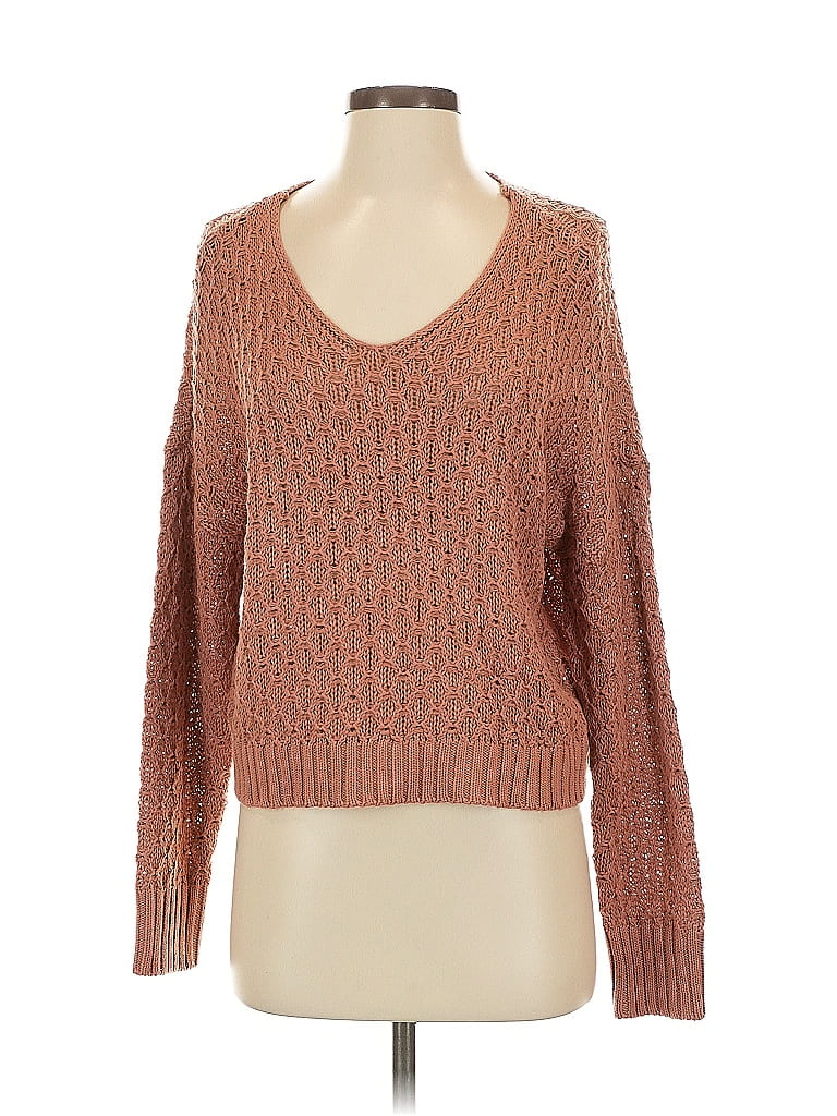 Z Supply Pullover Sweater, Size: X-Small. Item Details: Brown, Plunge Neckline, Long Sleeve, Frayed Edges, Women's Tops