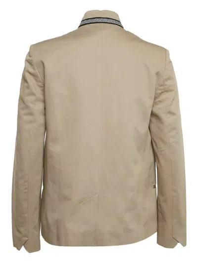 beige open front collar detail welt pockets Condition: GOOD. This previously owned and used item is in good condition with minimal signs of use. This may include fading of material or plating and scratches.