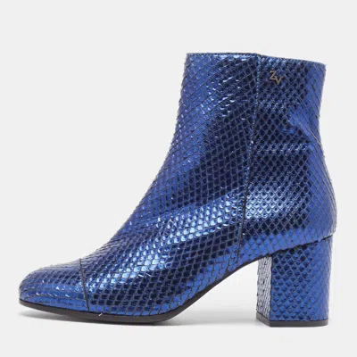 Pre-owned Zadiq & Voltaire Blue Python Block Heel Ankle Boots Size 37