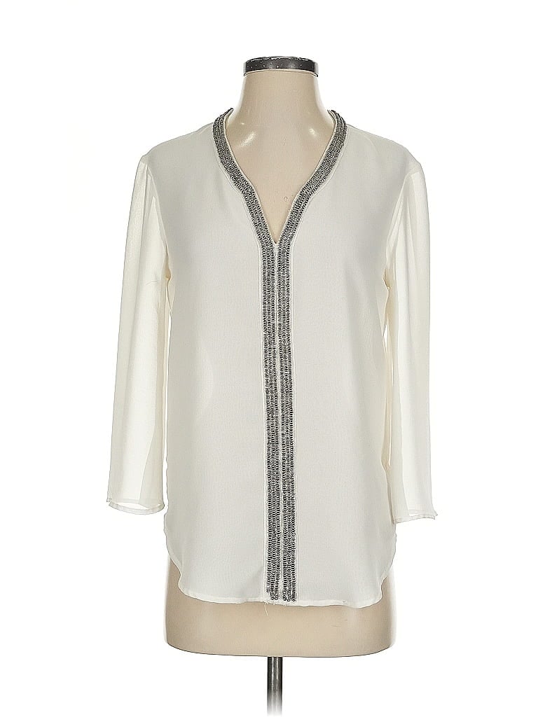 Zara Basic 3/4 Sleeve Blouse, Size: X-Small. Item Details: Ivory, V Neck, 3/4 Sleeves, Beaded, Women's Tops