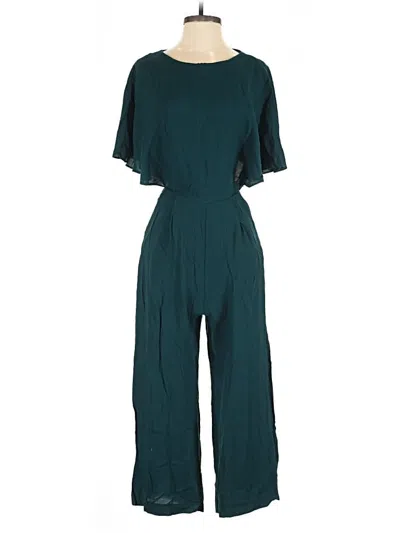 Zara Basic Jumpsuit, Size: Small. Item Details: Teal, Solid Pattern, Crew Neck, Boot Leg, Short Sleeve, Ruffles, Women's Dresses