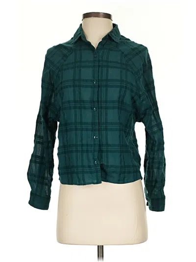 Zara Basic Long Sleeve Blouse, Size: Small. Item Details: Teal, Plaid Pattern, Square Neckline, Flannel, Women's Tops