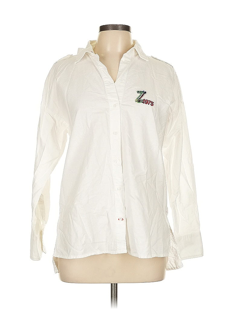Zara Basic Long Sleeve Blouse, Size: Large. Item Details: White, Collared Neckline, Long Sleeves, Embroidered, Women's Tops