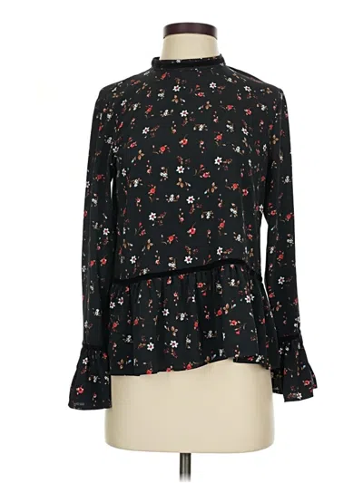 Zara Basic Long Sleeve Turtleneck, Size: X-Small. Item Details: Black, Floral Pattern, Mock Neckline, Long Sleeves, Velvet, Women's Tops