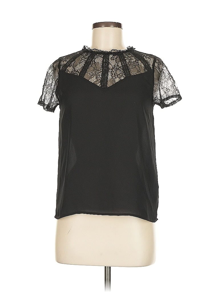 Zara Basic Short Sleeve Blouse, Size: Small. Item Details: Black, Mock Neckline, Short Sleeves, Women's Tops, 100% Polyester