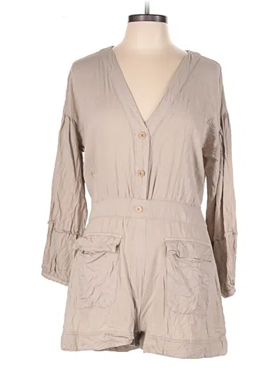 Zara Romper, Size: Large. Item Details: Tan, Solid Pattern, V-Neck, Long Sleeve, Zippers, Women's Dresses