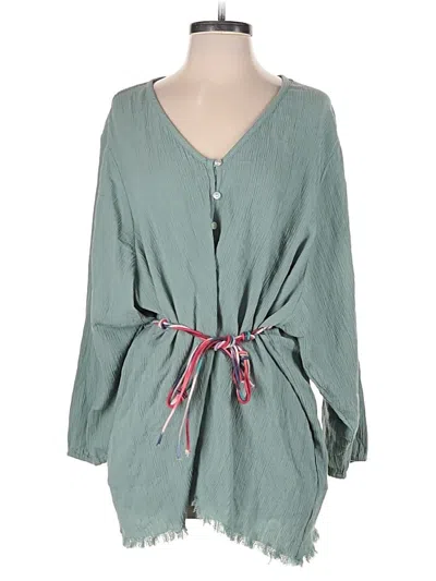 Zara Romper, Size: Medium. Item Details: Green, V-Neck, Wide Leg, Long Sleeve, Women's Dresses, Viscose/Cotton/Linen