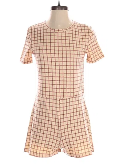 Zara Romper, Size: Small. Item Details: Tan, Plaid Pattern, Crew Neck, Skinny Leg, Short Sleeve, Women's Dresses