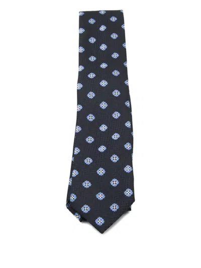 ZEGNA Patterned Ties With Pointed Tip Design In Blue