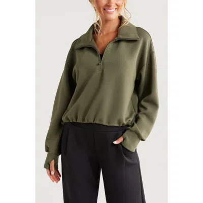 ZELLA Soft Modal Blend Half Zip Pullover In Olive Night