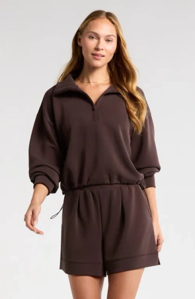 ZELLA Ultra Soft Scuba Half Zip Pullover In Brown Mole