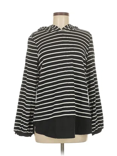 Zenergy by Chico's Pullover Sweater, Size: Medium. Item Details: Black, Stripes Pattern, Ruffles Neckline, Long Sleeve, Women's Tops, Polyester/Spandex