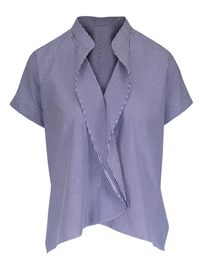 ZERO + MARIA CORNEJO Striped-pattern Collared Blouse In Blue