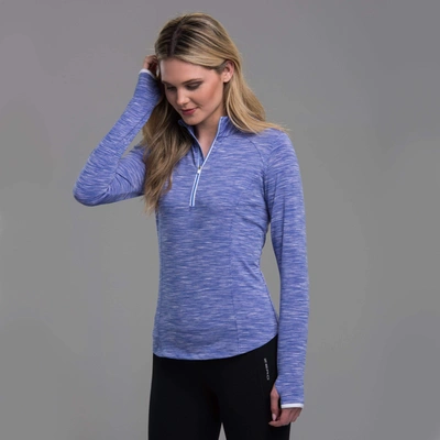 The ultimate fashion layering piece with incredible detail, our Shae Zip Mock is a tonal space dyed knit with added pops of contrast color. Perfect for the course or a long run down the river, you'll stay cool, cute, and sporty all at once. Shell Fabric: Space Dyed Stretch Polyester Knit 88% Polyester / 12% Spandex UPF 50 Exposed contrast zipper with orbit logo pull Contrast mesh knit back panel for extra breathability Thumbhole at cuff to help keep sleeves down and hands warm Machine wash