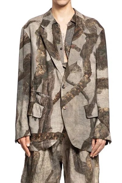 browndigital graphic printnotch lapelsbutton closureside pocketside flap pocketsdropped shouldersbuttoned cuffsback splits