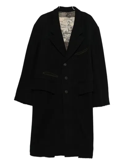 in black wool, revers, three buttons closure, long sleeves, breast pocket, welt pocket, flap pockets, back slip, raw cut hem, oversize, 99% virgin wool, 1% polyamide, attached fabric, 54% linen, 46% cotton, Made in China, the models is 1. 91 and wears size 50